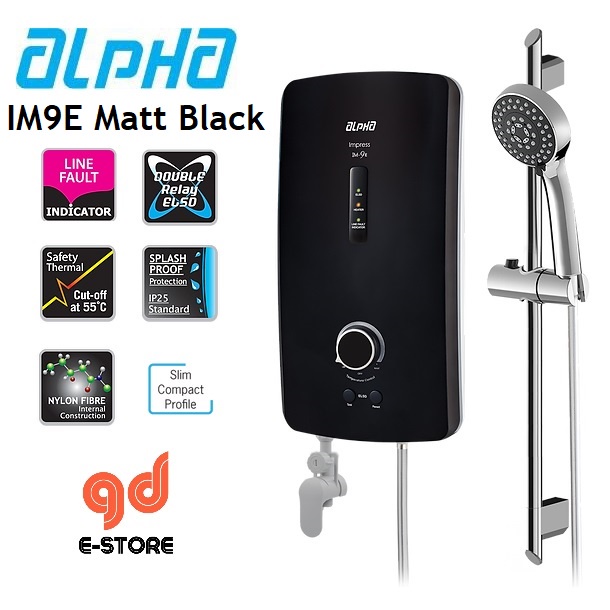 Alpha Water Heater Im9e Metal Black Matt Black No Pump Shopee Malaysia